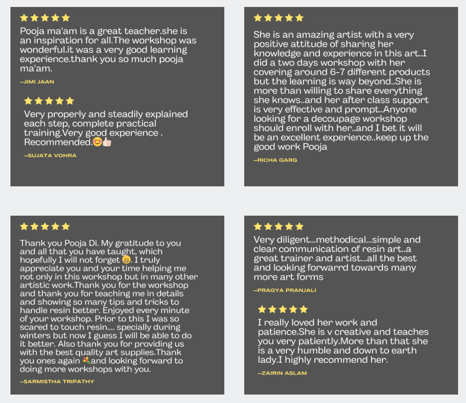 I’m Pooja Yadav, an artist and educator passionate about teaching art in a simple and joyful way. Through my online courses, I help beginners explore Alcohol Ink, resin art and mixed media art. My goal is to make art relaxing, accessible, and beginner-friendly for everyone.